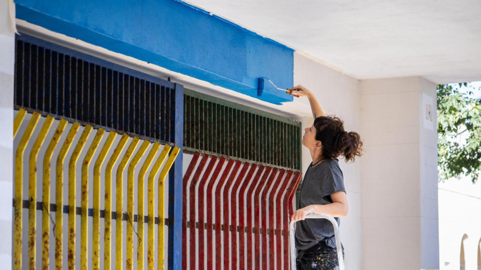 (di Maria Grazia Marilotti) Un tocco di colore in più tra le strade di Carbonia che si ritaglia sempre più un nuovo profilo di città del cinema, fabbrica della settima arte per giovani filmakers. Un'idea che si delinea sulle coordinate di un'opera di arte pubblica e relazionale di Camilla Falsini. La pittrice ed illustratrice romana che dal 2023 firma l'identità visiva del Carbonia film festival, ha scelto l'ingresso con inferriata della Scuola elementare Deledda di via Roma per imprimere la sua traccia contemporaneo e sottrarre alla ruggine e ai segni del tempo, un piccolo angolo della città mineraria. Una città che sempre più grazie alla Cac Carbonia della Società Umanitaria e al suo Carbonia film festival si configura come laboratorio creativo del fare cinema per talenti emergenti e professionisti dell'audiovisivo da tutta Italia, attraverso le residenze artistiche. "Mi piaceva l'idea di dare una nota di bellezza a una parete della città lasciata un po' a se stessa, un luogo vivo, vissuto, attraversato ogni giorno dai bambini di Carbonia e dintorni", racconta all'ANSA Camilla Falsini. L'opera, che sarà inaugurata mercoledì 5 novembre alle 16:30 dà il via al Carbonia Film Festival 2025, cinque giorni di cinema e incontri dal 5 al 9 novembre. Al pubblico l'artista presenterà la sua nuova opera permanente donata a Carbonia. Attraverso un gioco di linee nette e tonalità decise blu, rosso, giallo, verde, col suo tratto d'autrice riconoscibile Camilla Falsini restituisce l'immagine di uno spazio accogliente e che vibra di quotidianità. Tra storie, architetture, persone, comunità, strade, percorsi, l'opera grafica diventa quasi un racconto visivo sul legame tra arte, cinema e comunità. Camilla Falsini ha un'esperienza ventennale nel campo della editoria, grafica e street art. Ha firmato opere create con il contributo di Netflix, Lavazza, Iliad, Zalando, illustrazioni per diverse testate tra cui Vanity Fair e Washington Post, e numerose opere murali presenti in città come Roma, Milano, Napoli, Torino, Palermo e Bologna. A Carbonia lascerà un'opera dedicata alla città e che richiama suggestioni e temi delle sue opere di grafica create per i cartelloni del festival. Un ideale viaggio tra l'architettura razionalista, i paesaggi urbani e minerari, ancora, le migrazioni, lo spostarsi da un luogo all'altro per necessità o desiderio di confronto, e il cinema, come atto di visione collettiva e strumento di rilancio del territorio. "Un personale omaggio a un luogo che ho imparato a conoscere attraverso il mio lavoro - conclude - e che si è svelato anno dopo anno col suo fascino non ostentato discreto e una sorprendente forza comunicativa".